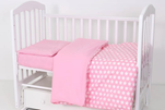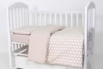 Комплект белья в кроватку.jpgПостельное белье Топотушки 12 месяцев сшито из поплина. Это воздухопроницаемое хлопковое полотно, которое имеет нежную и приятную на ощупь поверхность. Ткань не требует особого ухода. Она легко стирается в щадящем режиме, практически не мнется и гладится при высоких температурах. При этом ткань износостойкая и будет дарить малышу комфорт долгие годы. Простынь на резинке надежно зафиксирована на матрасе.