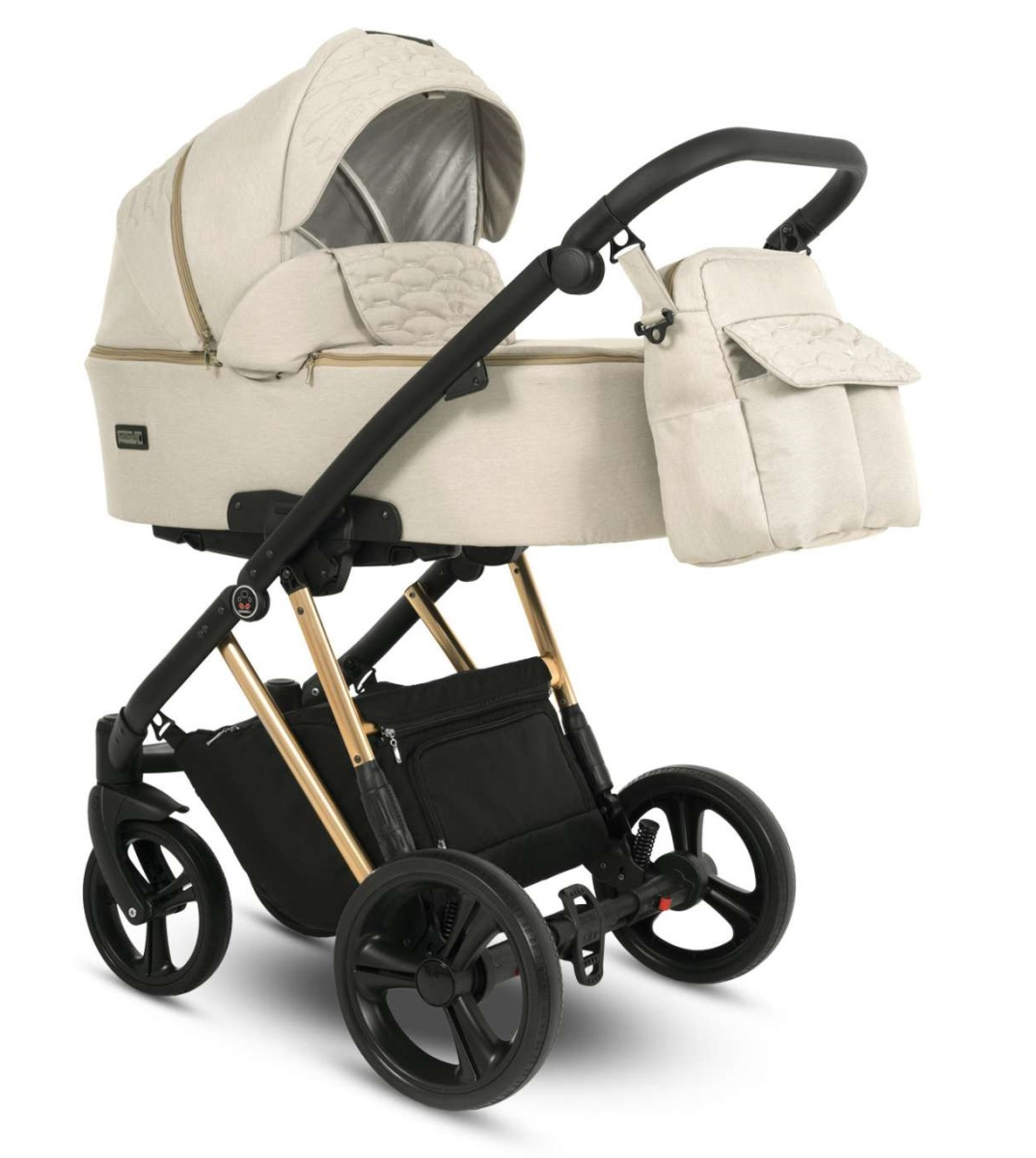Коляска обладает большими гелиевыми колесами. Их не нужно подкачивать, они не боятся проколов и не замерзают зимой. Большой диаметр позволит вам беспрепятственно путешествовать даже по бездорожью. Регулируемые амортизаторы блокируют вибрацию при столкновении с неровностями.