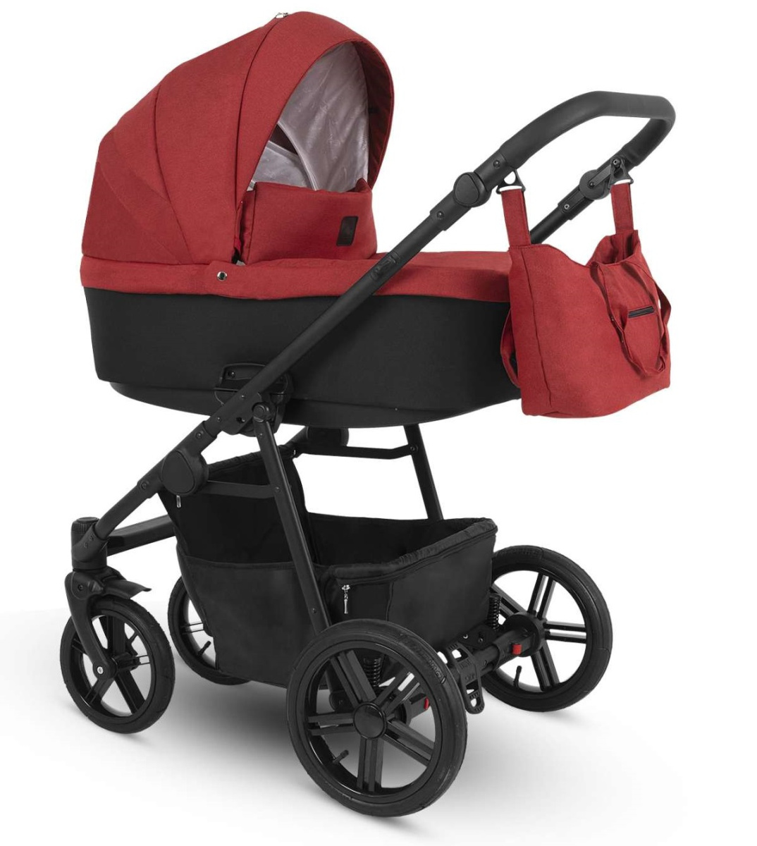 Легкая алюминиевая рама, большие надувные колеса, двойная амортизация, поворотные колеса, вместительная корзина, большая свободная люлька, просторный прогулочный блок, удобная сумка для мамы - в этой модели учтены все детали.