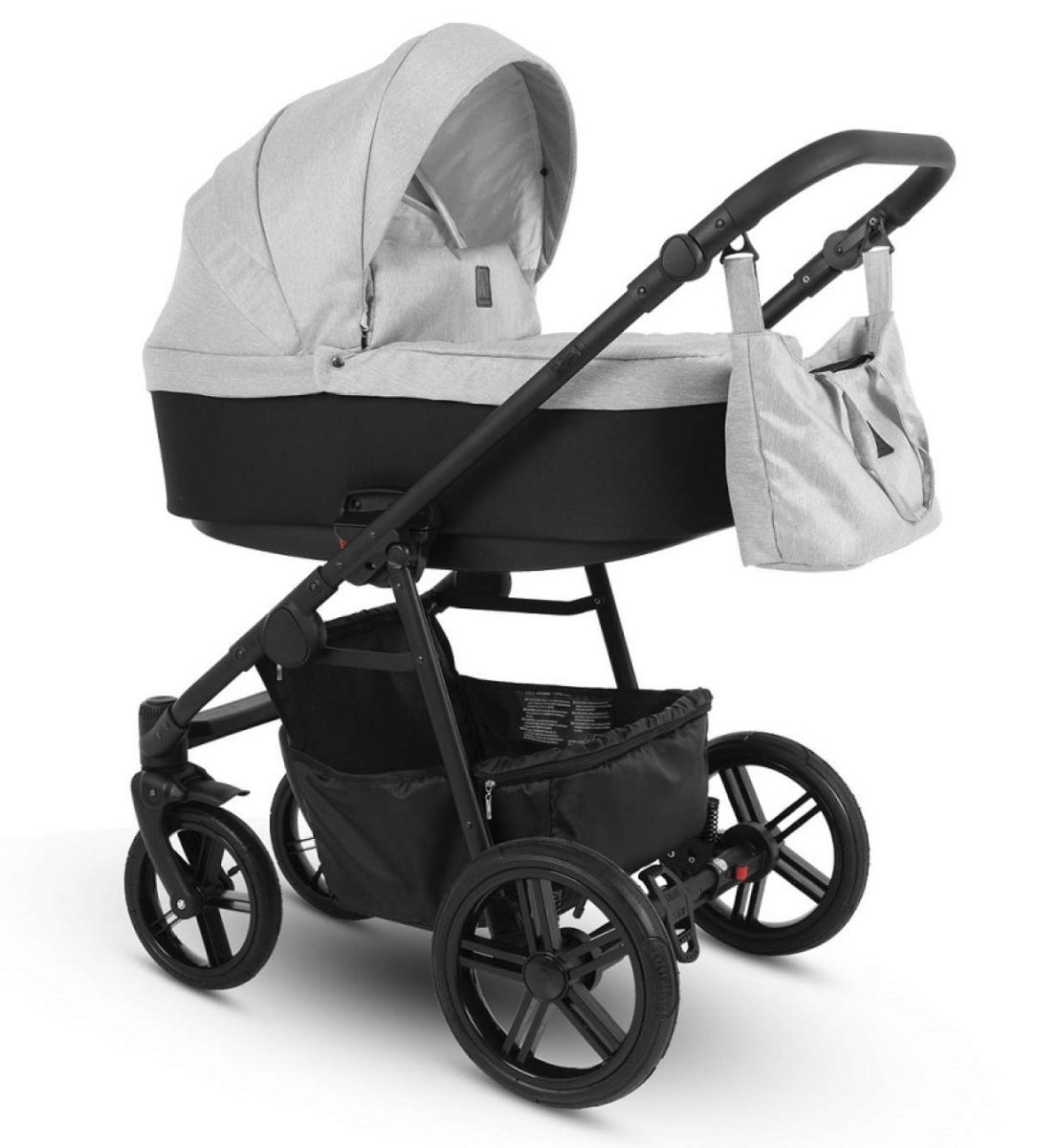 Легкая алюминиевая рама, большие надувные колеса, двойная амортизация, поворотные колеса, вместительная корзина, большая свободная люлька, просторный прогулочный блок, удобная сумка для мамы - в этой модели учтены все детали.