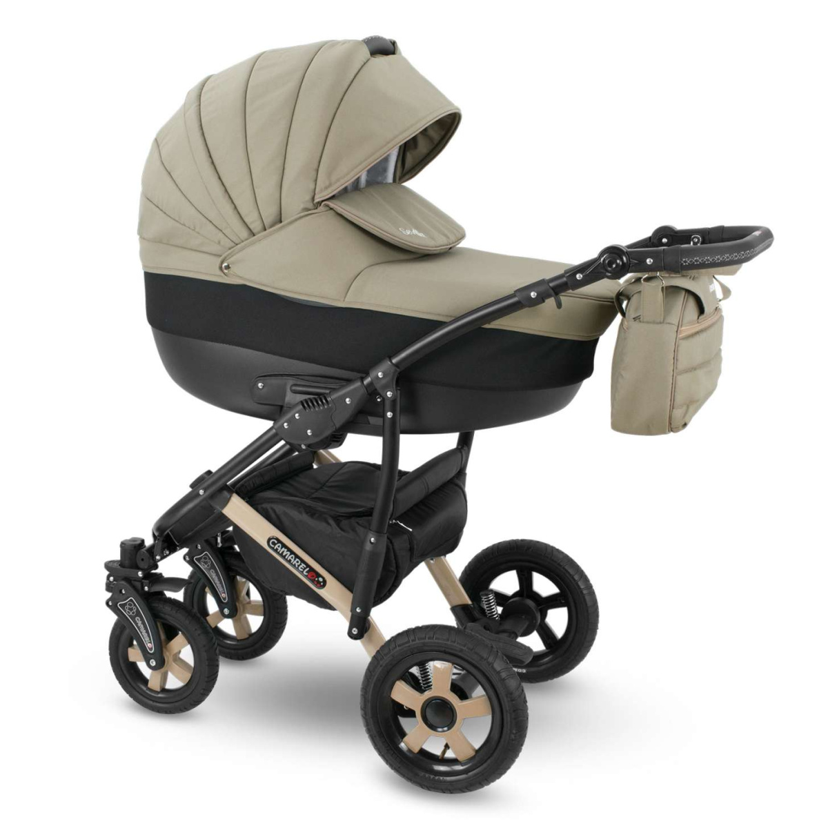 Коляска Camarelo Sevilla 3 в 1 состоит из люльки для новорождённых, прогулочного блока и люльки переноски.