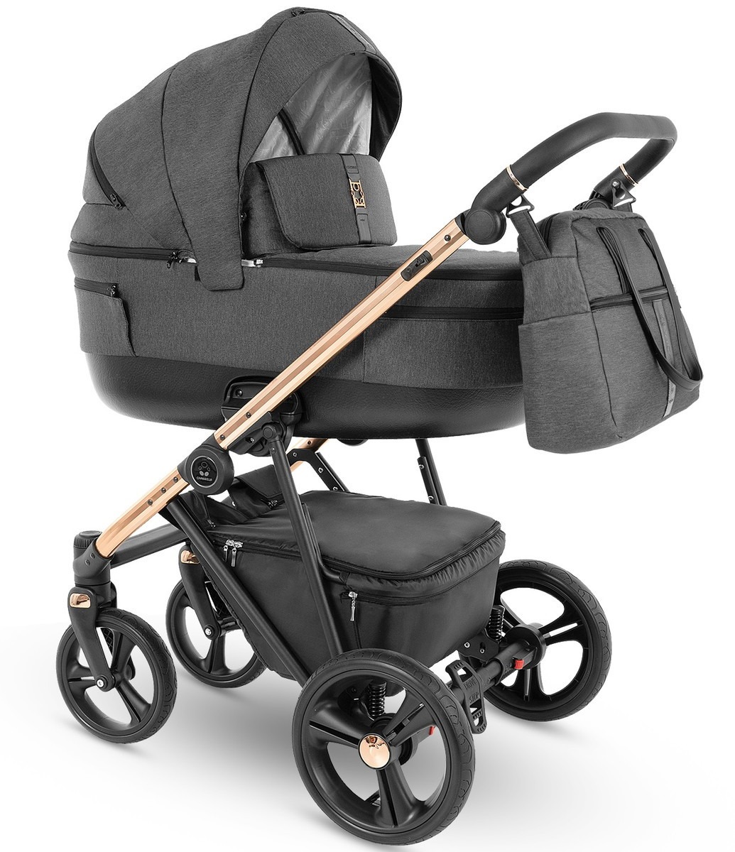 Коляска Camarelo Belagio 2 в 1  - элегантная, многофункциональная коляска с просторными блоками на лаковом шасси, оснащенная современными гелиевыми колесами.