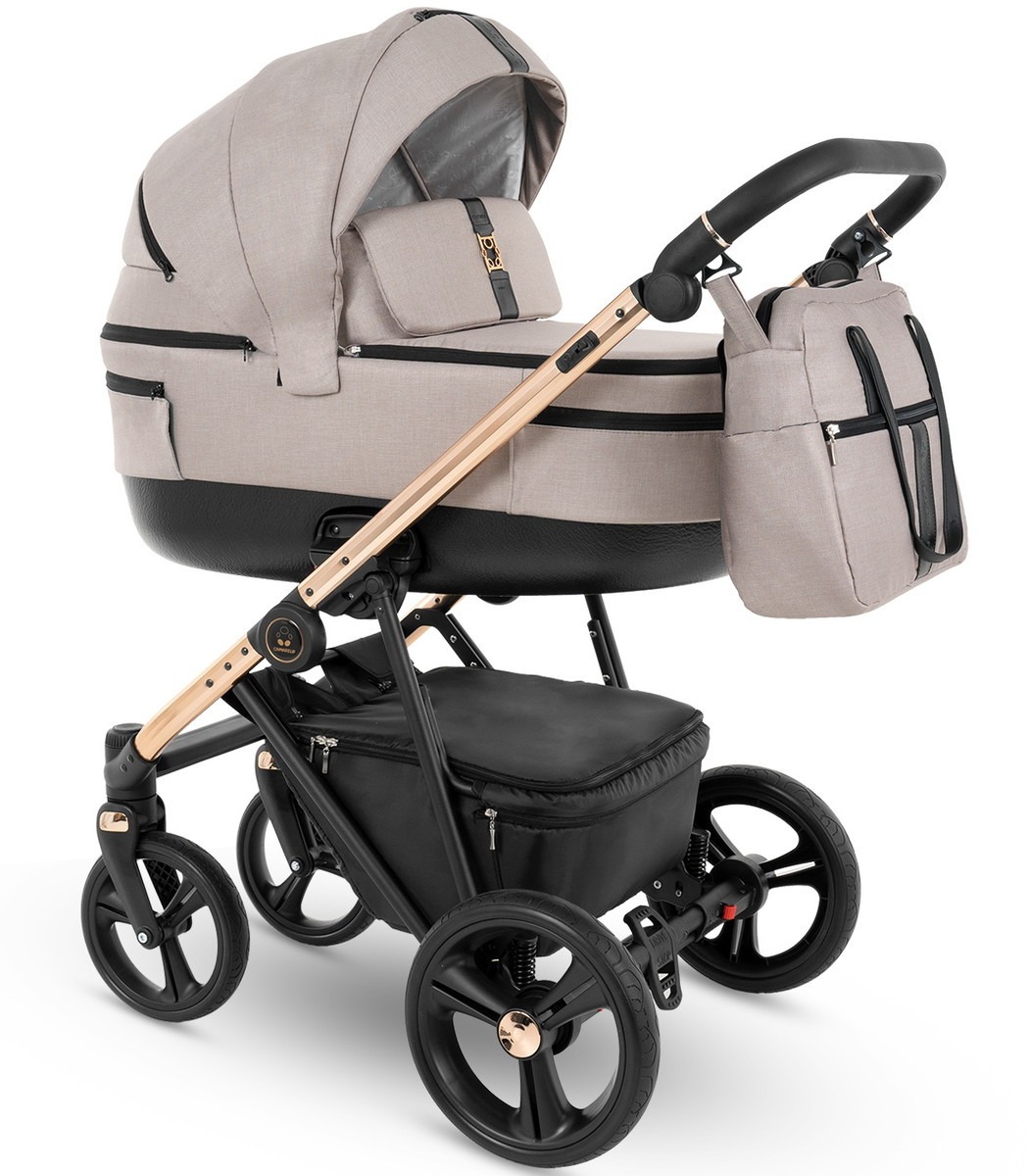 Коляска Camarelo Belagio 2 в 1  - элегантная, многофункциональная коляска с просторными блоками на лаковом шасси, оснащенная современными гелиевыми колесами.