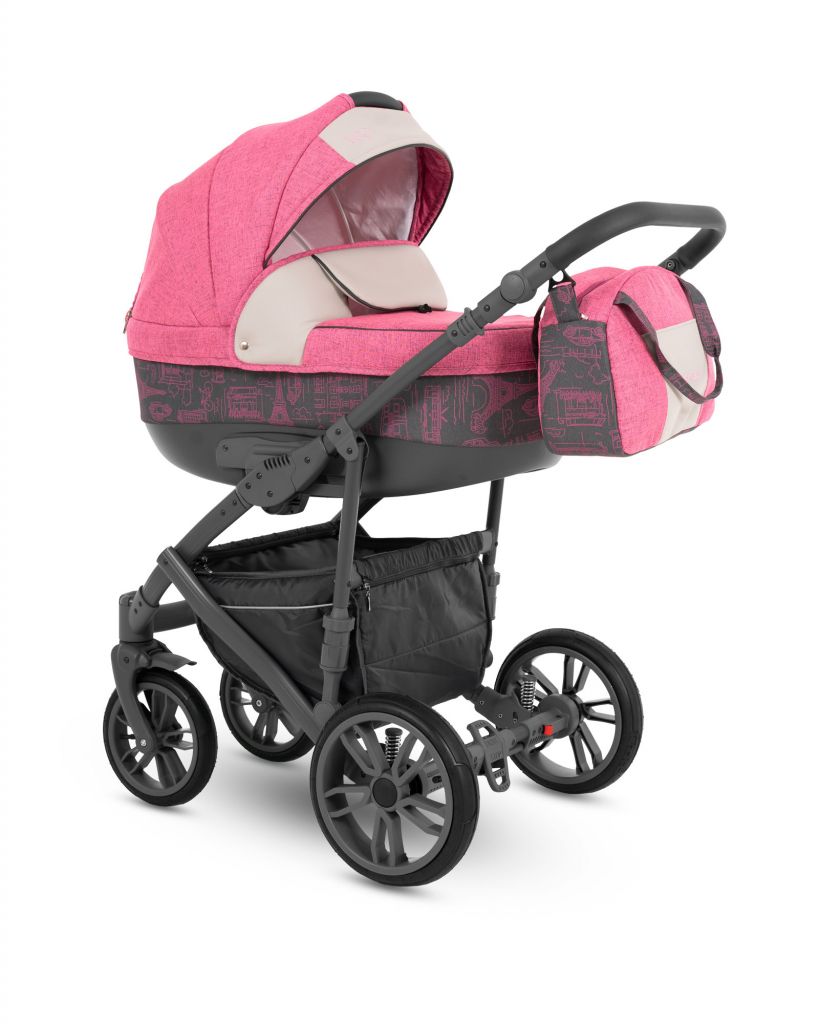Шасси коляски выполнено из легкого алюминиевого профиля с дополнительной амортизацией. Коляска оснащена надувными колесами на подшипниках, обеспечивающими надежность и плавность движения. Благодаря надежной тормозной системе Easy Stop, активируемой одним легким нажатием педали, коляска легко останавливается. Поворотные передние колеса обеспечивают идеальную маневренность, а также есть возможность фиксации для движения по прямой.