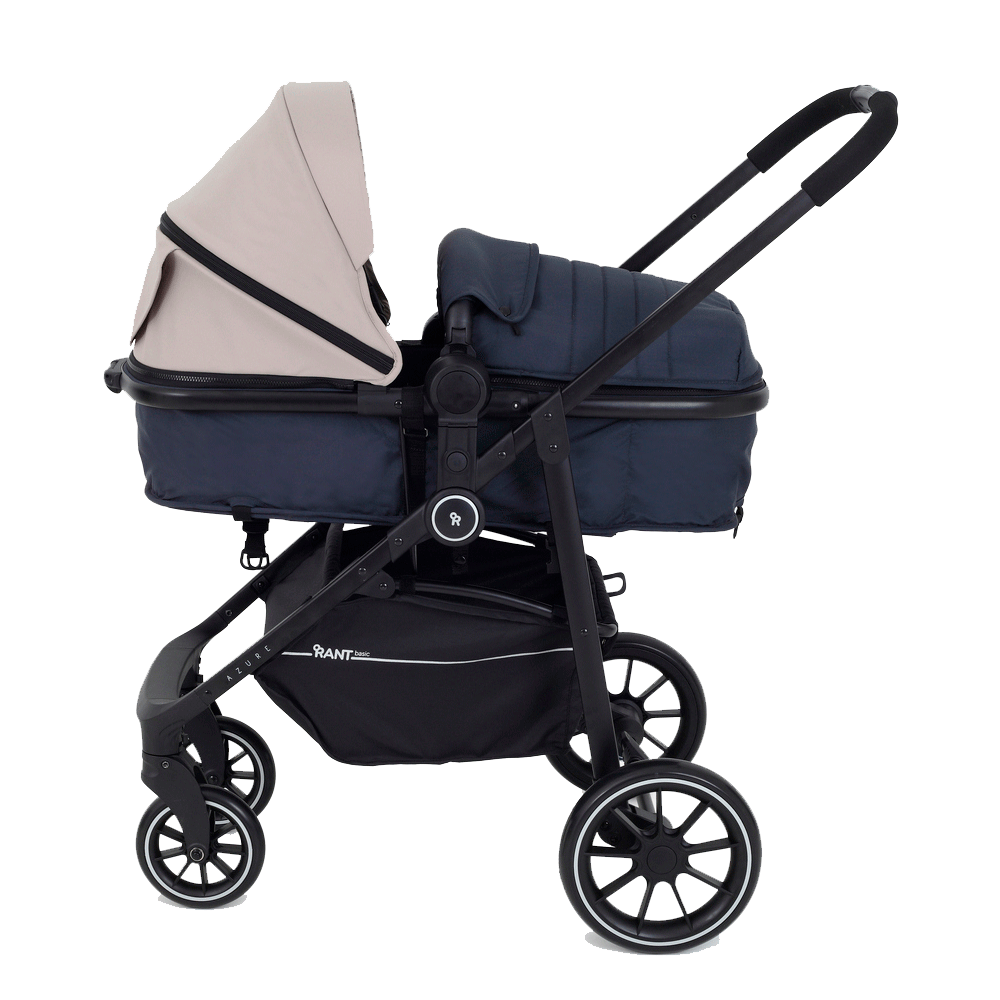 Rant Basic Azure подходит для детей от рождения до трех лет и имеет максимальную грузоподъемность 15 килограмм. Рама изготовлена из алюминия, что обеспечивает легкость и прочность коляски. Резиновые колеса обеспечивают плавное движение, а передние колеса поворачиваются, что делает коляску очень маневренной. Складывается коляска по типу “книжка”, а высоту ручки можно регулировать.