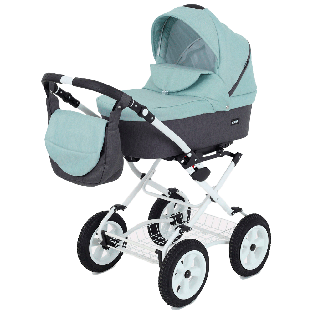 Коляска Rant Dream Classic  (цвет серый-мятный) — всесезонная модель с отличной амортизацией для ребенка с рождения до 3-4 лет. Эта качественная коляска изготовлена из ветрозащитных и водонепроницаемых материалов и подходит для всех сезонов.