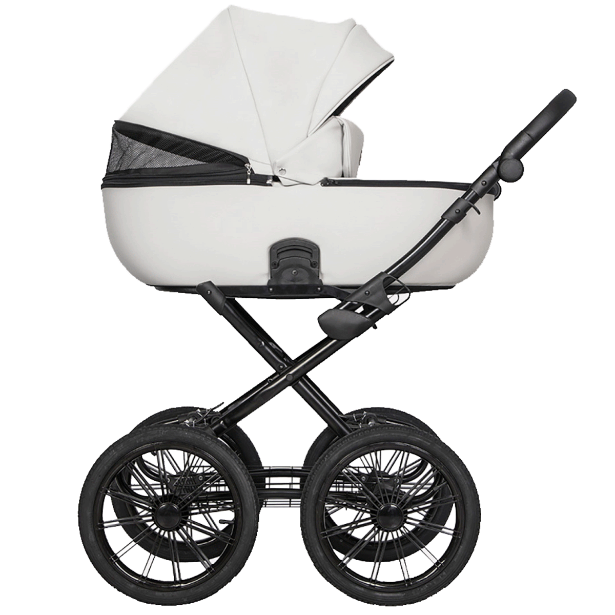 Люлька коляски Riko Basic Ozon Prestige изготовлена из ударопрочного пластика. Внутренняя часть люльки изготовлена из 100% хлопка высокого качества. Вся обивка легко снимается для стирки. Просторные размеры позволят малышу чувствовать себя свободно даже в объемном комбинезоне или теплом конверте. На капюшоне предусмотрена удобная ручка для переноски, козырек от солнца и вентиляционное окошко.