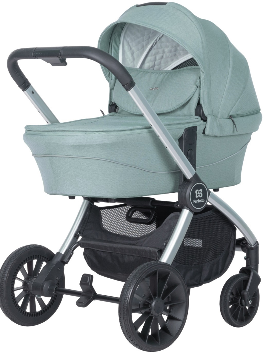 Коляска модульная 3 в 1 Farfello Baby shell BBS (BBS-33 green/зеленый/ серебро) - универсальный вариант для детей с рождения и до 3 лет.