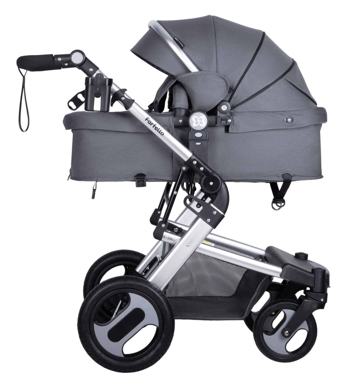 Универсальная коляска трансформер Farfello Diamond All-season (Электрический Серый) позволяет использовать коляску круглый год. Большие колёса с амортизацией справятся даже по бездорожью. Передние колёса с фиксацией вращаются на 360° - 20 см. Задние колёса цельнорезиновые с шипами - 29 см.