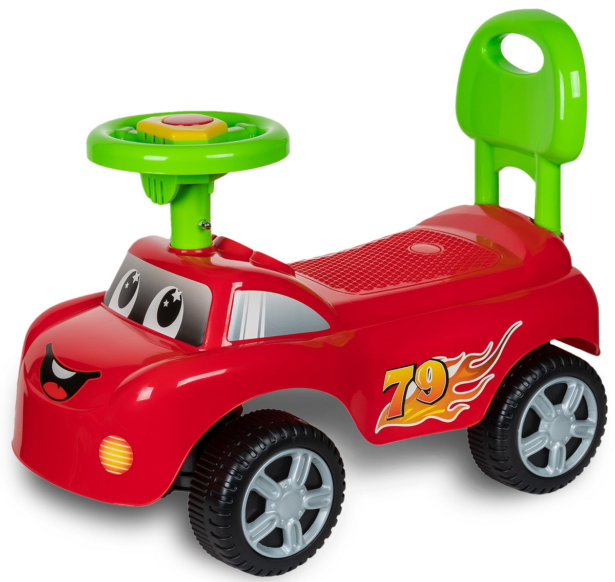 Поворотный музыкальный руль делает игру более интересной - звуковые сигналы привлекают внимание малыша и добавляют интерактивности. Такая каталка машинка помогает развивать моторику и воображение ребенка.
