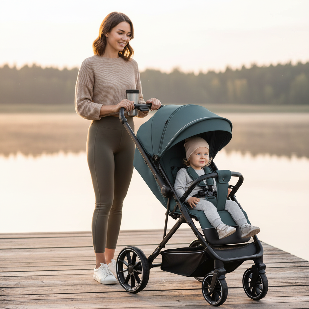 Модель оснащена перекидной ручкой, что редко встречается в прогулочных колясках. Это позволяет менять направление посадки - ребенок может ехать лицом к родителям или смотреть вперед. Такое решение удобно в разном возрасте и при разной погоде.