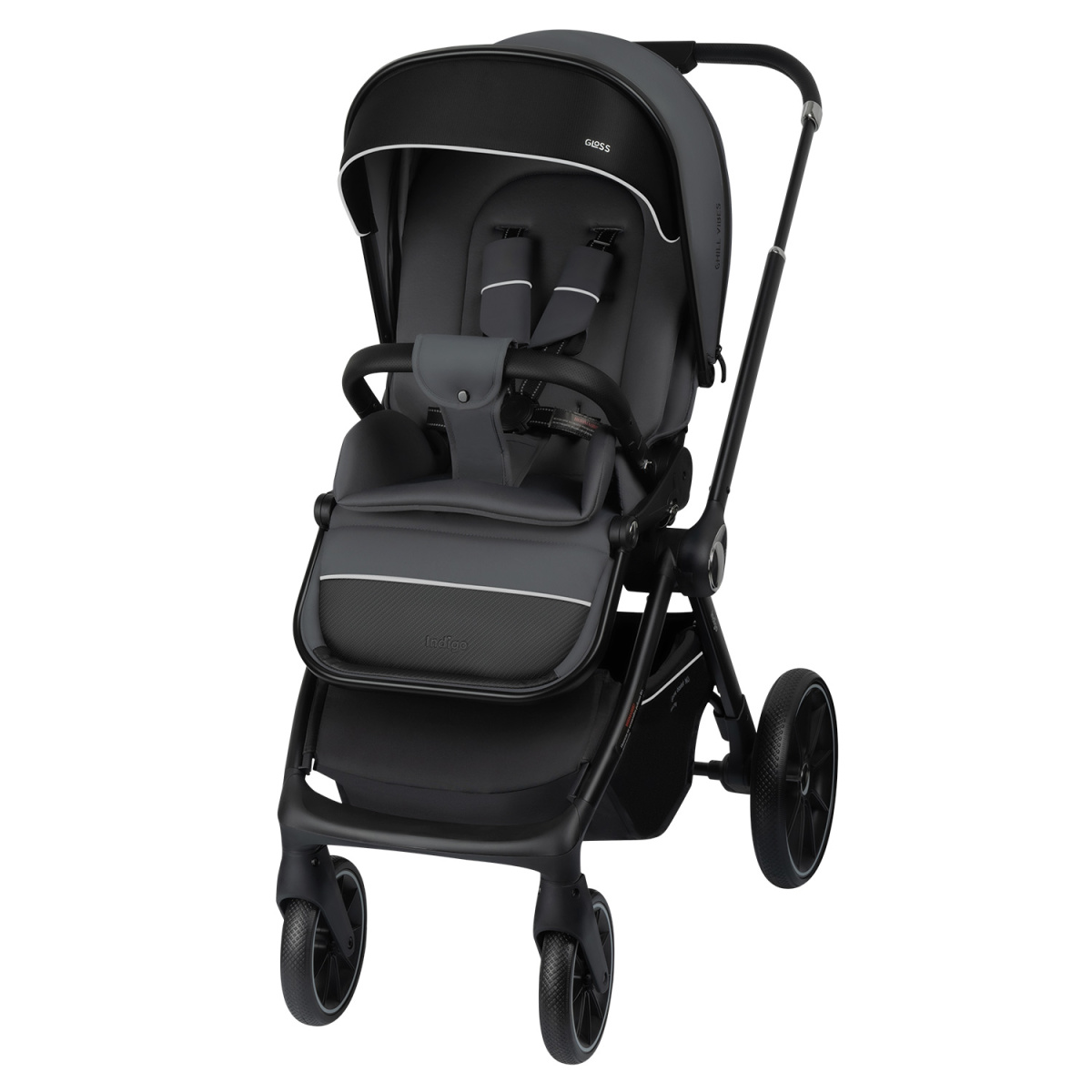 Для безопасности используется система 5-точечных ремней с регулировкой по высоте, а также съемный поворотный бампер. Все элементы, с которыми чаще всего контактируют родители, включая ручку, бампер и подножку, имеют практичное покрытие из экокожи.