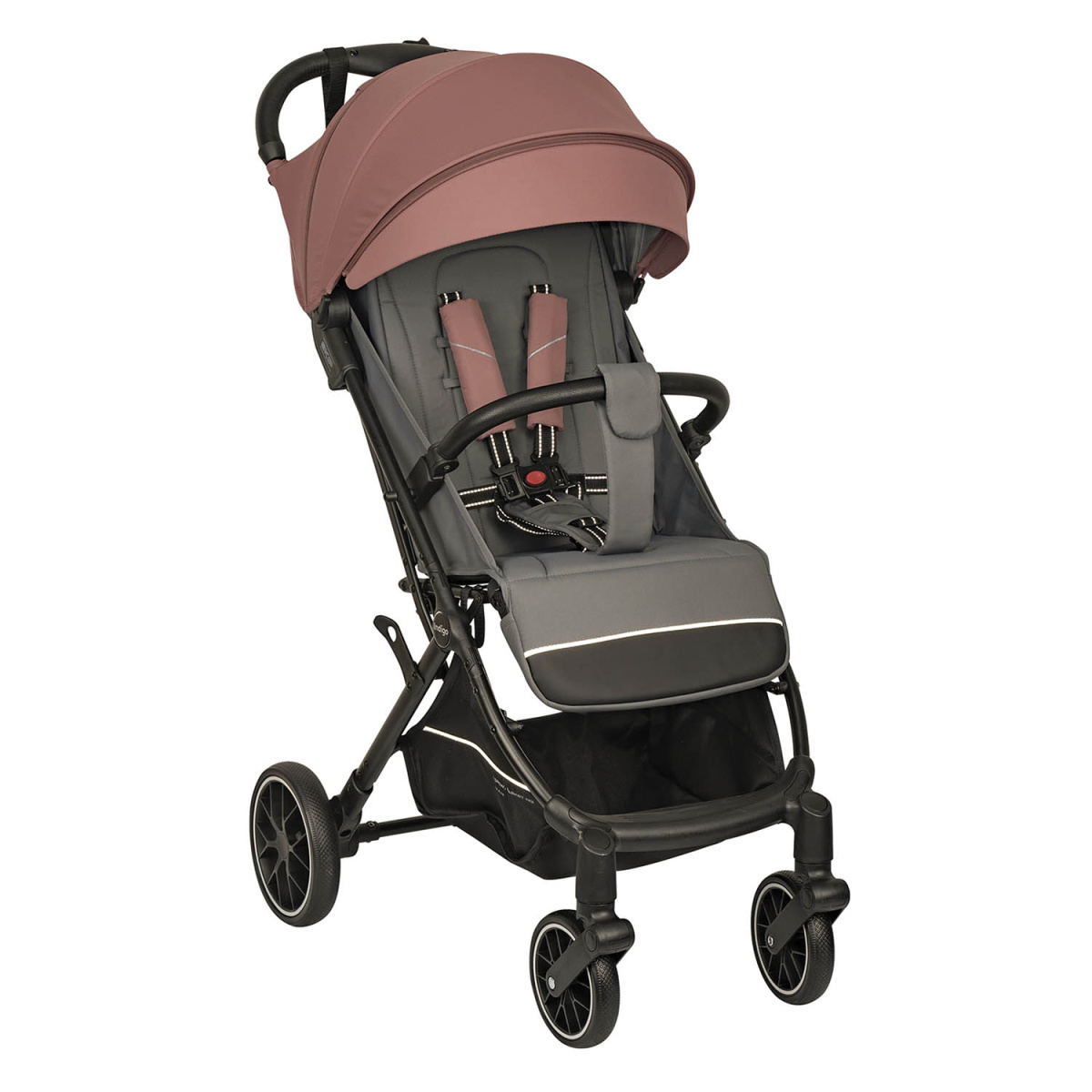 Безопасность во время прогулок обеспечивают 5-точечные ремни безопасности, съемный бампер и дополнительный страховочный ремешок для родителей, который помогает надежно контролировать коляску во время движения.