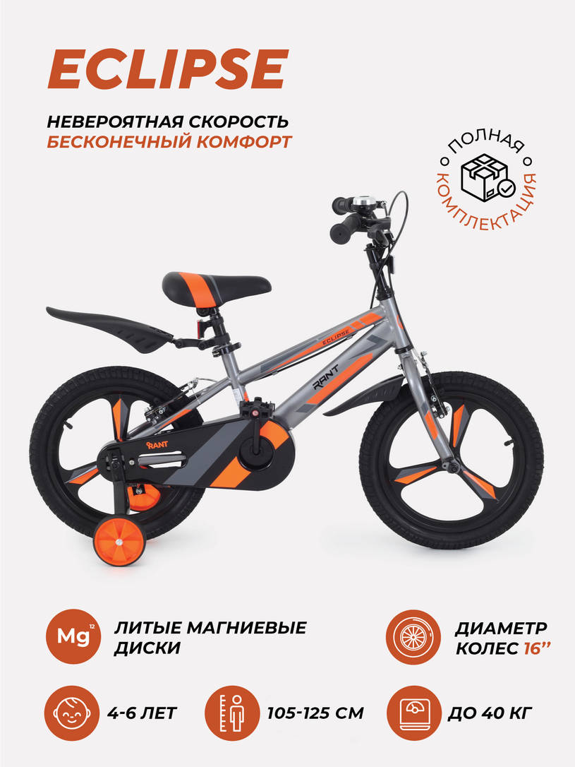 В интернет-магазине КОЛЯСКИ Вы можете купить велосипед 2-х колесный Rant Eclipse 16" серебристый с доставкой по Москве и МО и Московской области, в другие города России, с официальной гарантией производителя. КОЛЯСКИ - Ваш Любимый Интернет-Магазин Низких Цен!